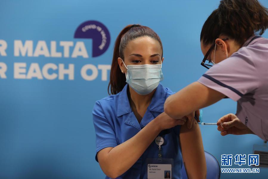 12月27日,在馬耳他瓦萊塔,國立圣母醫院護士蕾切爾·格雷奇接種新冠疫苗。