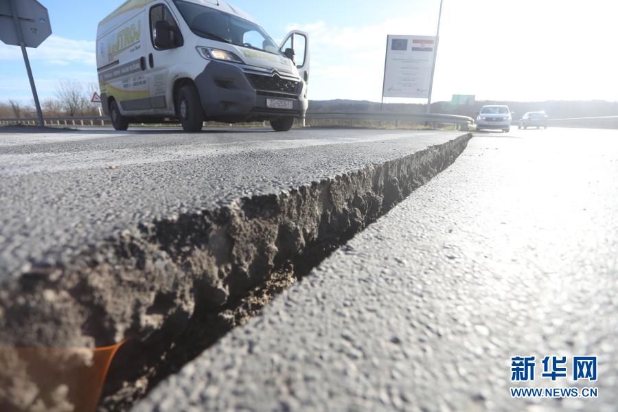 這是12月29日在克羅地亞中部城市錫薩克拍攝的地震后開裂的路面。新華社發(Pixsell圖片社 蒂羅尼攝)
