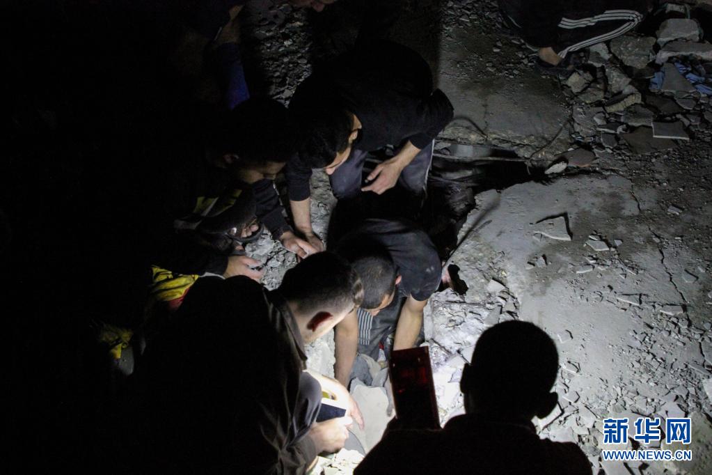 5月15日,救援人員在加沙城的空襲廢墟中搜救。