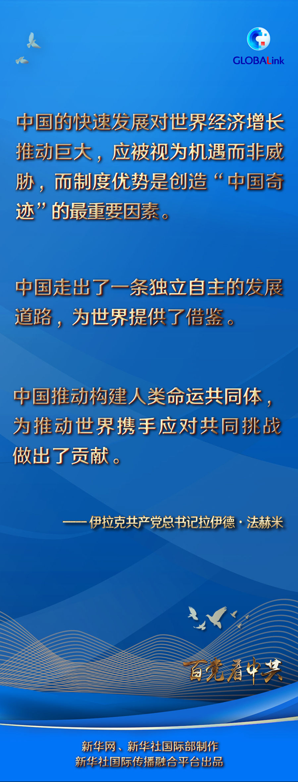在中國(guó)共產(chǎn)黨成立100周年之際,法赫米對(duì)中共取得的偉大成就致以誠(chéng)摯祝賀。他表示,在中共帶領(lǐng)下,中國(guó)在眾多領(lǐng)域?qū)崿F(xiàn)了大跨步發(fā)展。