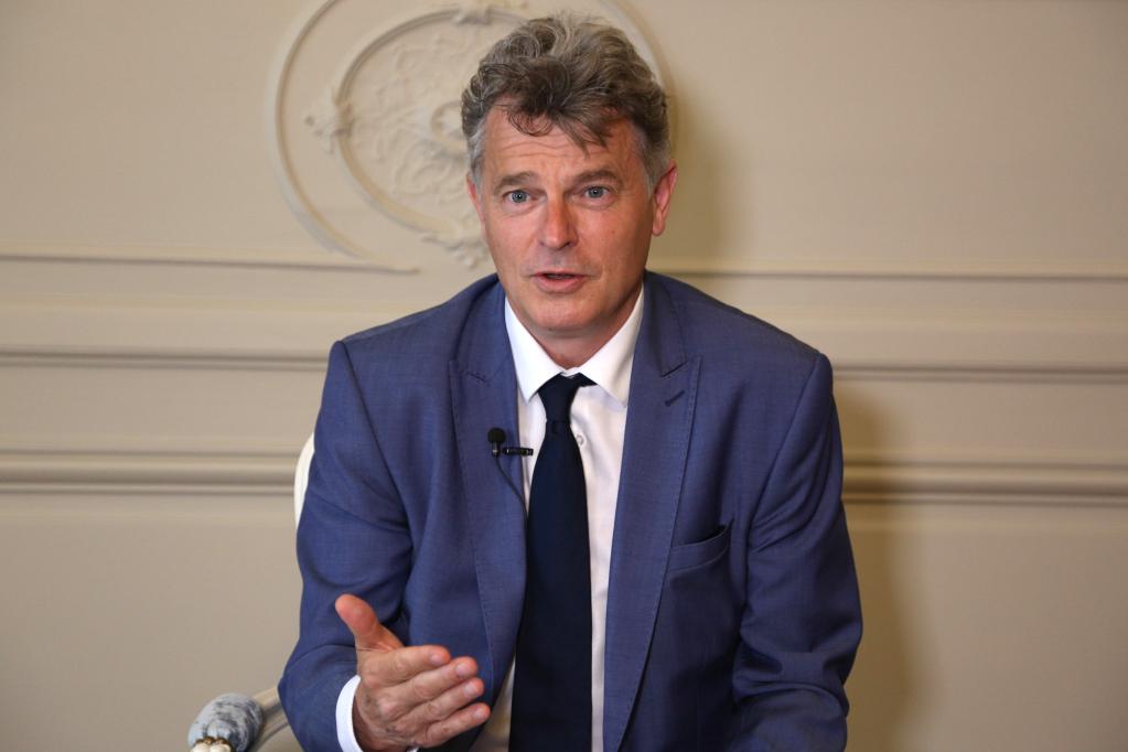 6月10日,法國共產黨全國書記法比安·魯塞爾在巴黎接受新華社記者采訪。新華社記者 唐霽 攝